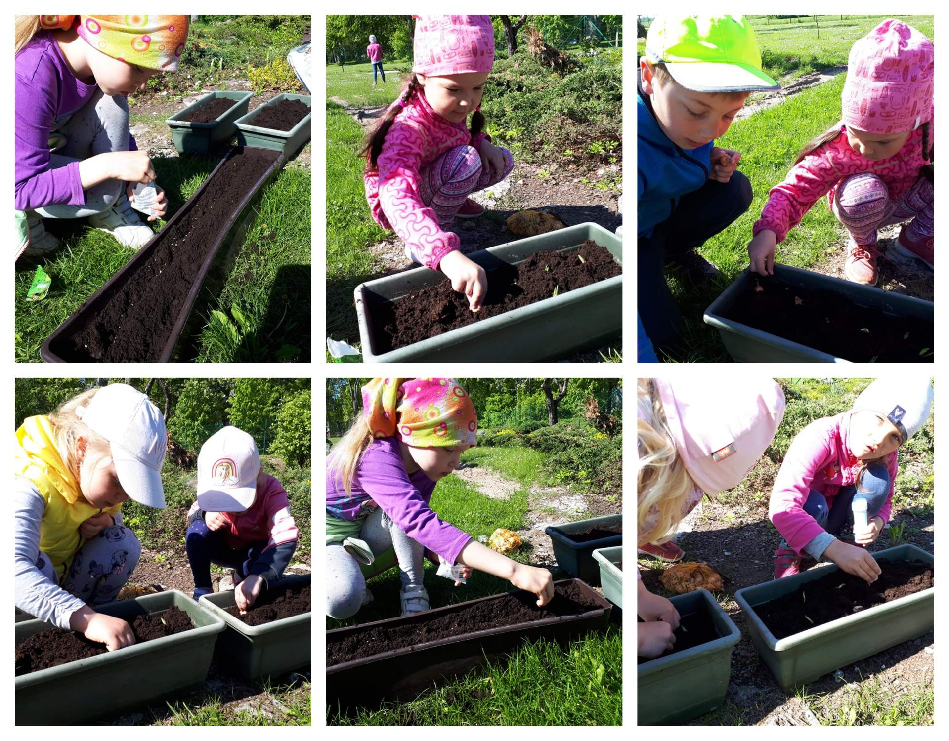 väikeste nobedate lasteialaste kasvatatud taimekesi.